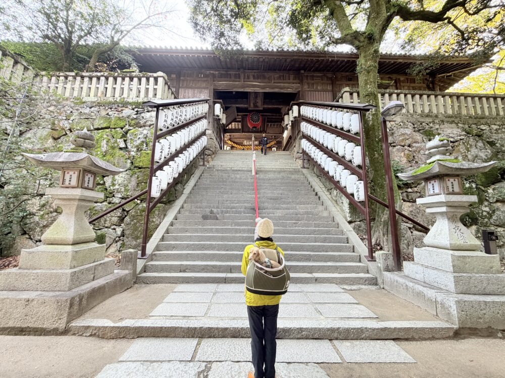 愛犬との参拝は可能ですが、リュックやスリングを使用必要、敷地内散歩は禁止。