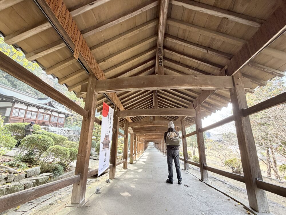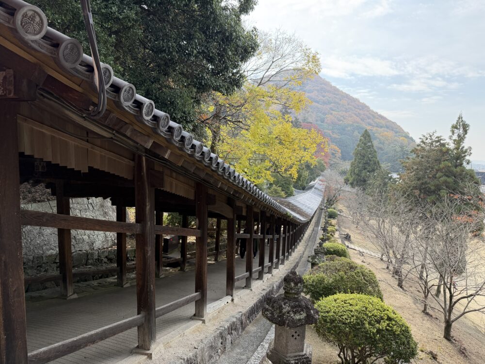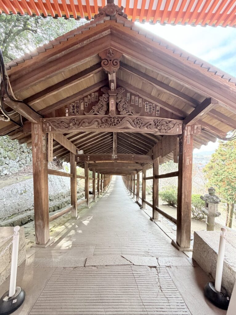 総延長398mの回廊は圧巻、傾斜地に立つ回廊ならではの景色が楽しめます。