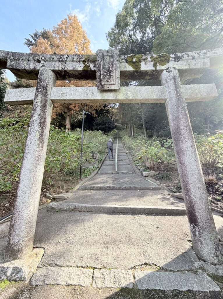 石段を登るルートが神秘的で、周囲は自然豊かな山腹にあります。