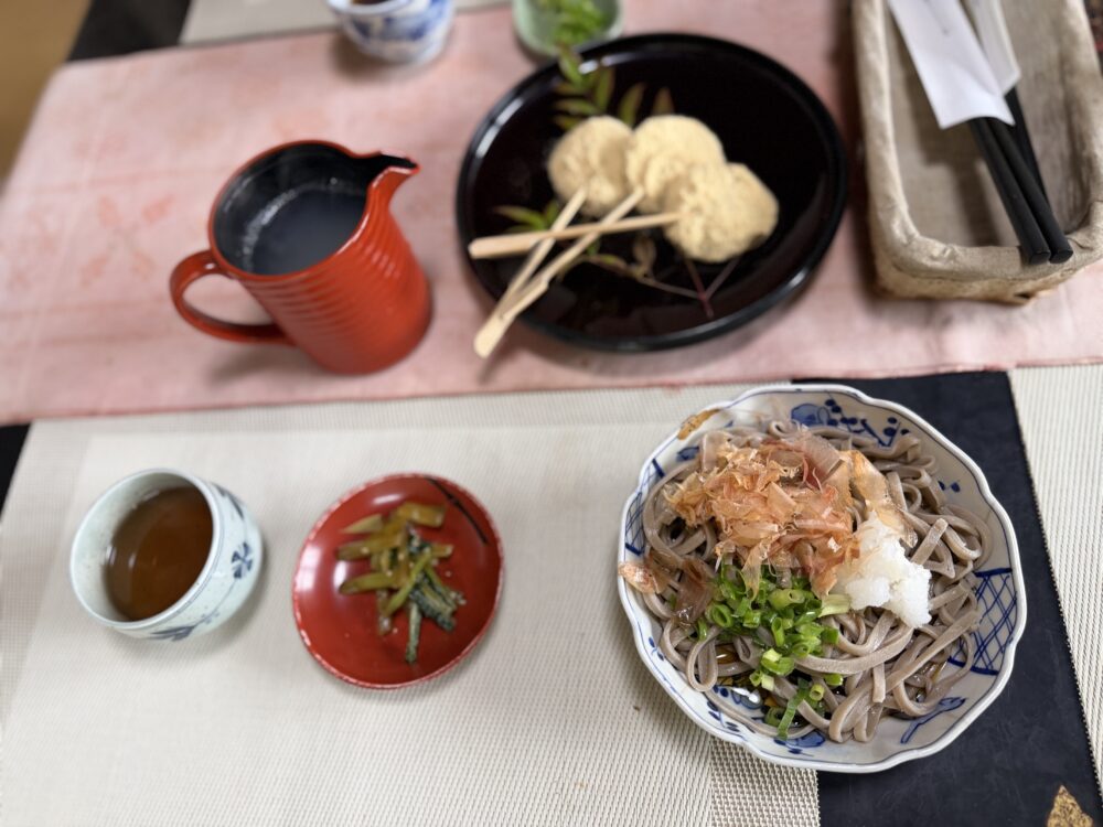 蕎麦は地下水にこだわった手打ち蕎麦で、特に 名物「蕎麦団子」 はぜひ注文しておきたい一品。