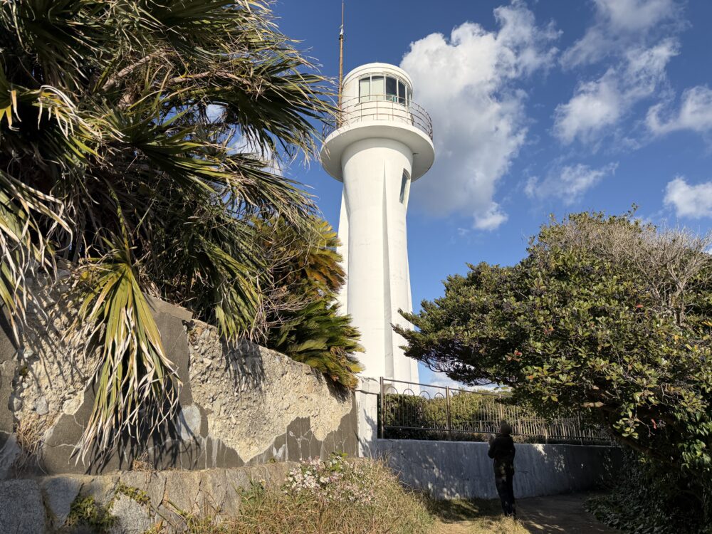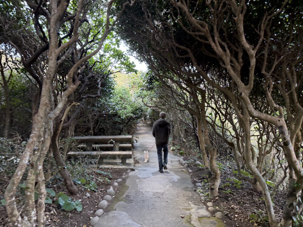 展望台から灯台方面へ亜熱帯の雰囲気の中遊歩道を進みます。