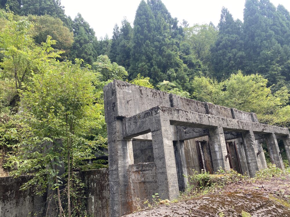 現在は第三選鉱所跡や坑口など巨大なコンクリート遺構が残りますが、内部は崩落の危険があるため立入禁止です。
