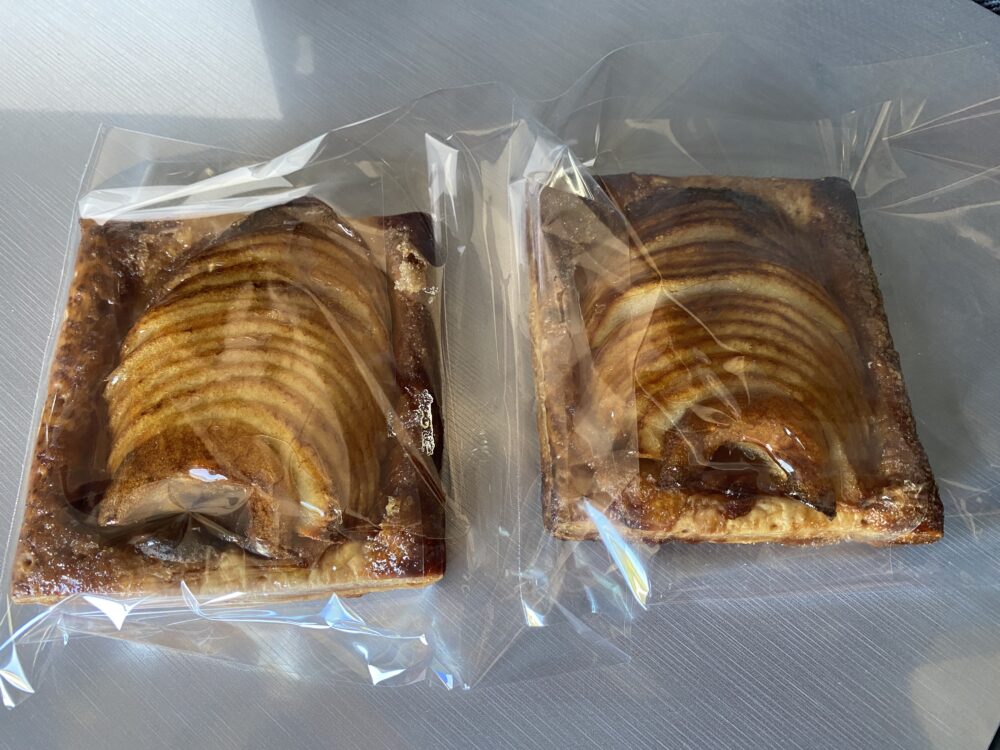 りんごは薄く切ってあり、生地がやや固めの為、りんごと生地のバランスで考えると